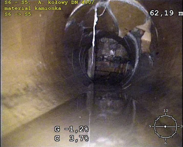 Na zdjęciach poniżej – prace prowadzone przez wykonawcę omawianych prac firmę Instbud, a także zdjęcie rurociągu przed renowacją (wyraźnie widać, że kanał od góry w jednym miejscu jest zarwany) oraz po jej zakończeniu.