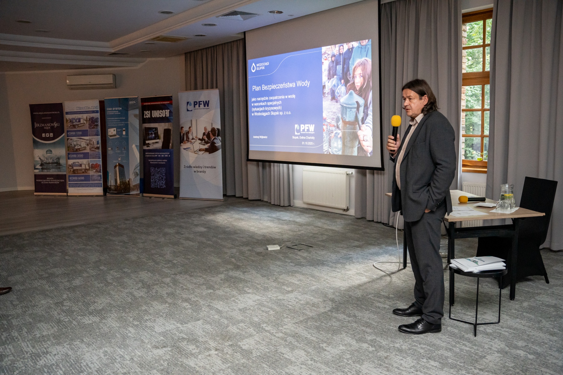 Podczas konferencji Prezes Zarządu Andrzej Wójtowicz wystąpił drugiego dnia z referatem dotyczącym roli planów bezpieczeństwa wody w zapewnieniu ciągłości dostaw w warunkach szczególnych. Z kolei trzeci dzień wydarzenia zakończył się wizytą techniczną na obiekcie stacji uzdatniania wody w Słupsku, połączoną z prezentacją nowoczesnych rozwiązań wspierających zarządzanie ryzykiem.